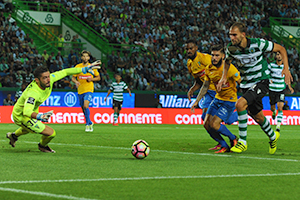 Mas o Sporting acabou por abrir o activo (13’) com Bas Dost a voar que nem um pássaro alado e cabecear, no seguimento de um excelente passe de Gelson – o homem do jogo – para o fundo da baliza de Moreira, que nada conseguiu fazer. No que foi a primeira oportunidade dos leões.