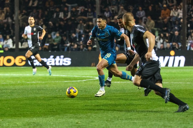 No entanto, o Farense começou por dar um “ar da sua graça” quando (18’) Baldé rematou forte, bem colocado, mas a bola foi bater no poste na baliza à guarda de Diogo Costa, tendo podido ser surpreendido (29’) quanto o árbitro assinalou uma grande penalidade, mas, depois da visita ao VAR, a decisão foi retificada pela negativa.