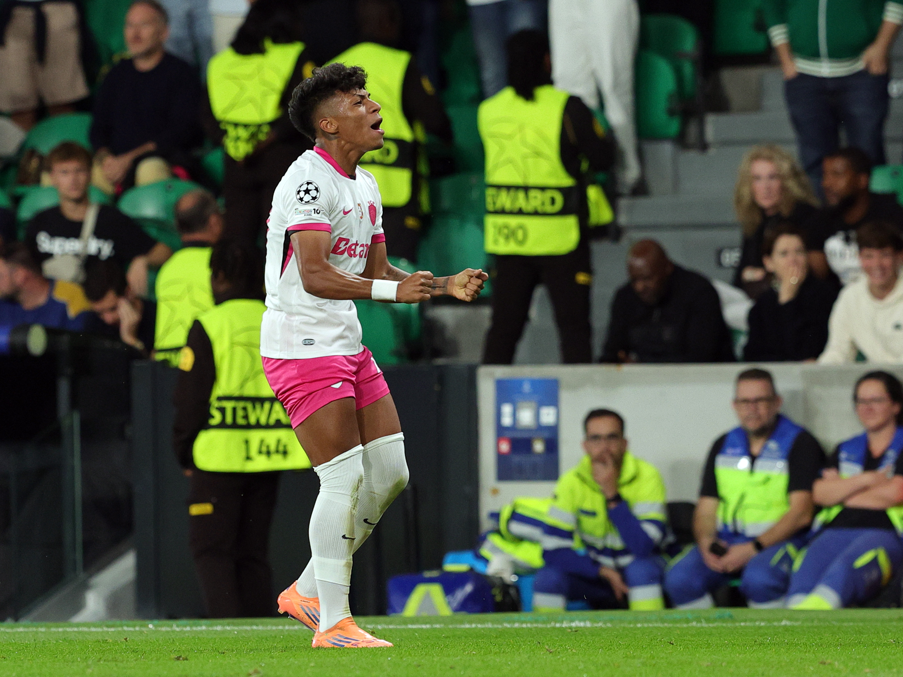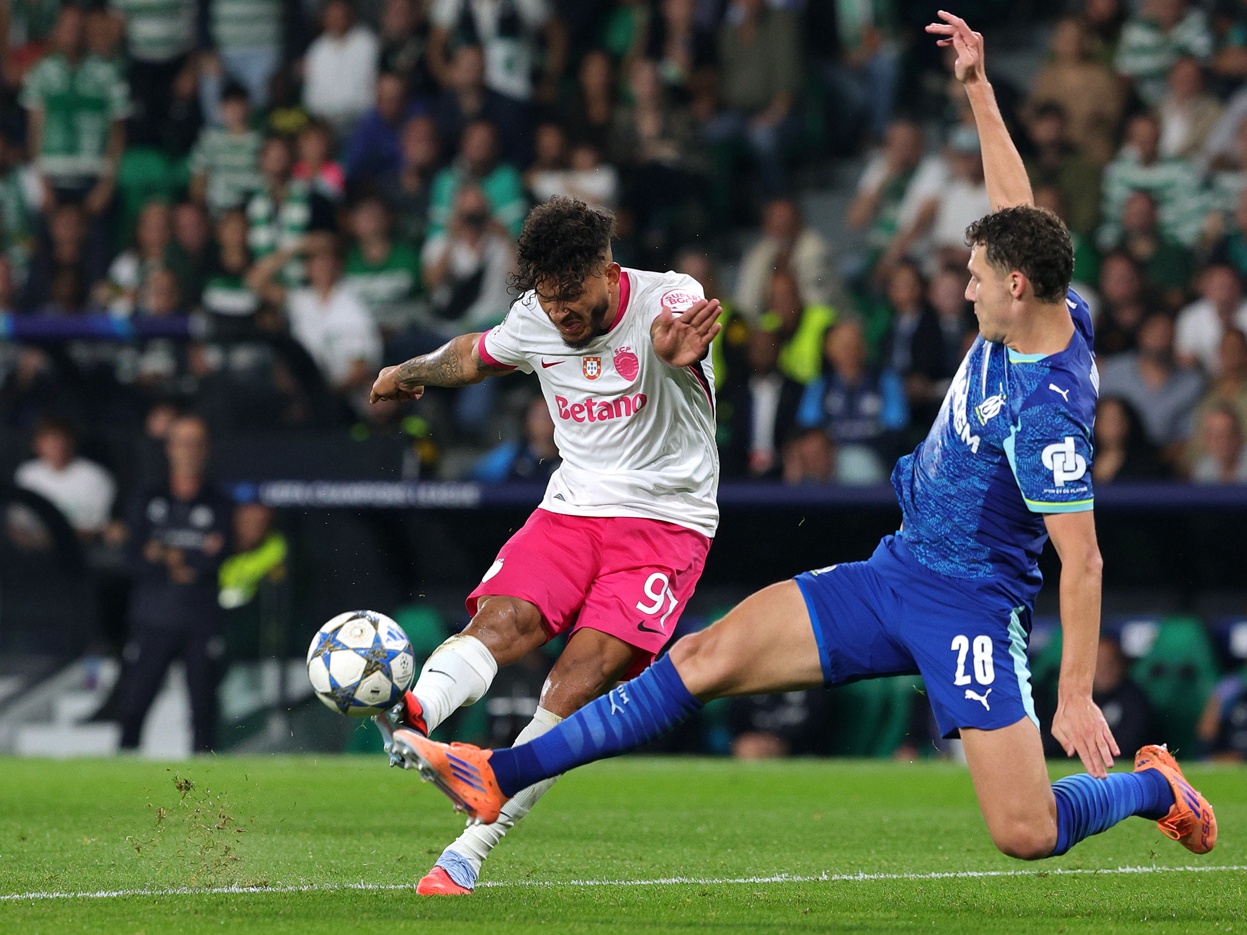 O que não aconteceu (aos 14 minutos), quando o jogador com o número 14 (Igor Paixão) na camisola, voltou a fazer “diabruras” à defesa leonina e acabou por marcar o golo de abertura, aqui também com culpa de Rui Silva, que ficou colado à relva e nem fez qualquer gesto ativo para tentar afastar a daquela zona, vendo a bola a entrar em arco na sua baliza, pata gaudio dos adeptos franceses presentes no estádio.