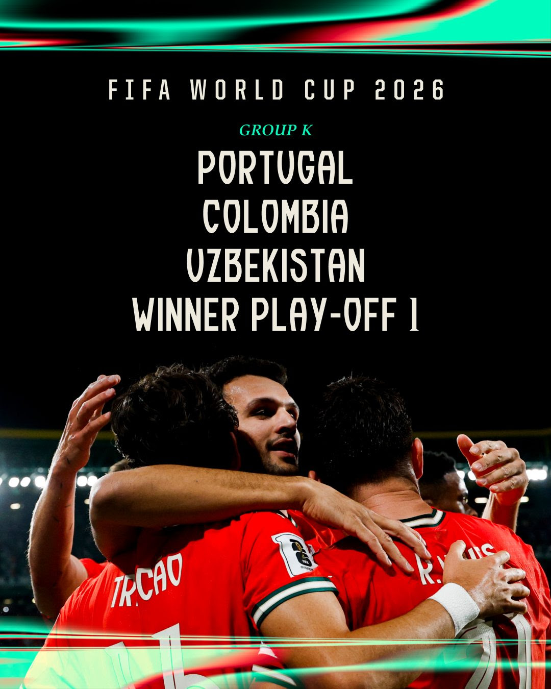 Grupo K – Portugal, Vencedor do Playoff Intercontinental 1**, Uzbequistão e Colômbia.