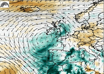 Prevê-se que esteja centrada em 43°N e 16°W às 09UTC de dia 7 de fevereiro, com uma pressão atmosférica no seu centro de 997 hPa, inserida numa vasta região depressionária centrada no Atlântico Norte.