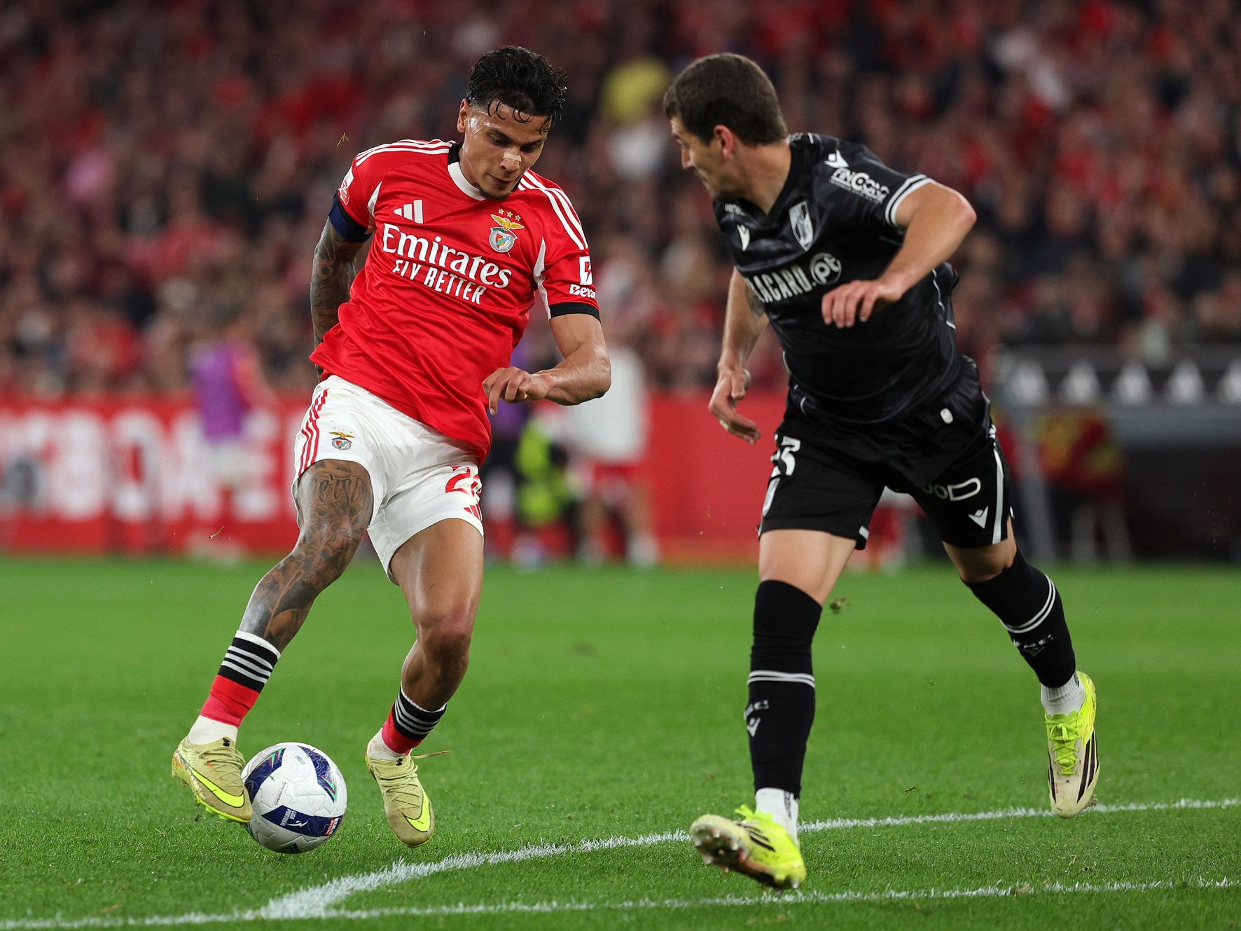 Bastaram 15 minutos para que os benfiquistas se colocassem na dianteira do marcador, quando Prestianni abriu o ativo, ao rematar cruzado para inaugurar o marcador, após jogada individual de Richard Ríos, que percorreu meio-campo para assistir o argentino, com que se chegou ao final do primeiro tempo.